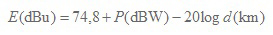 La ecuación (1) puede expresarse en unidades logarítmicas dBu (dBµV/m) de la siguiente manera: